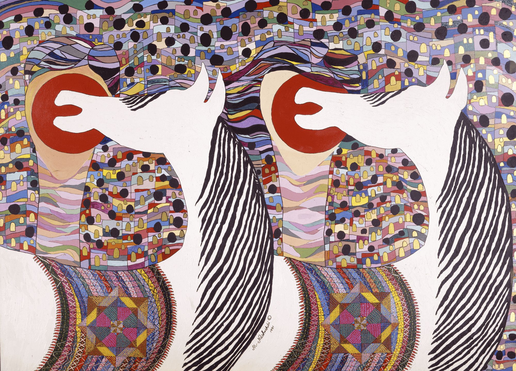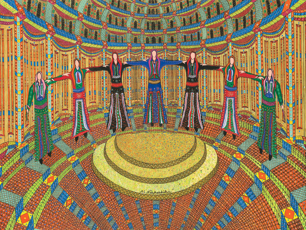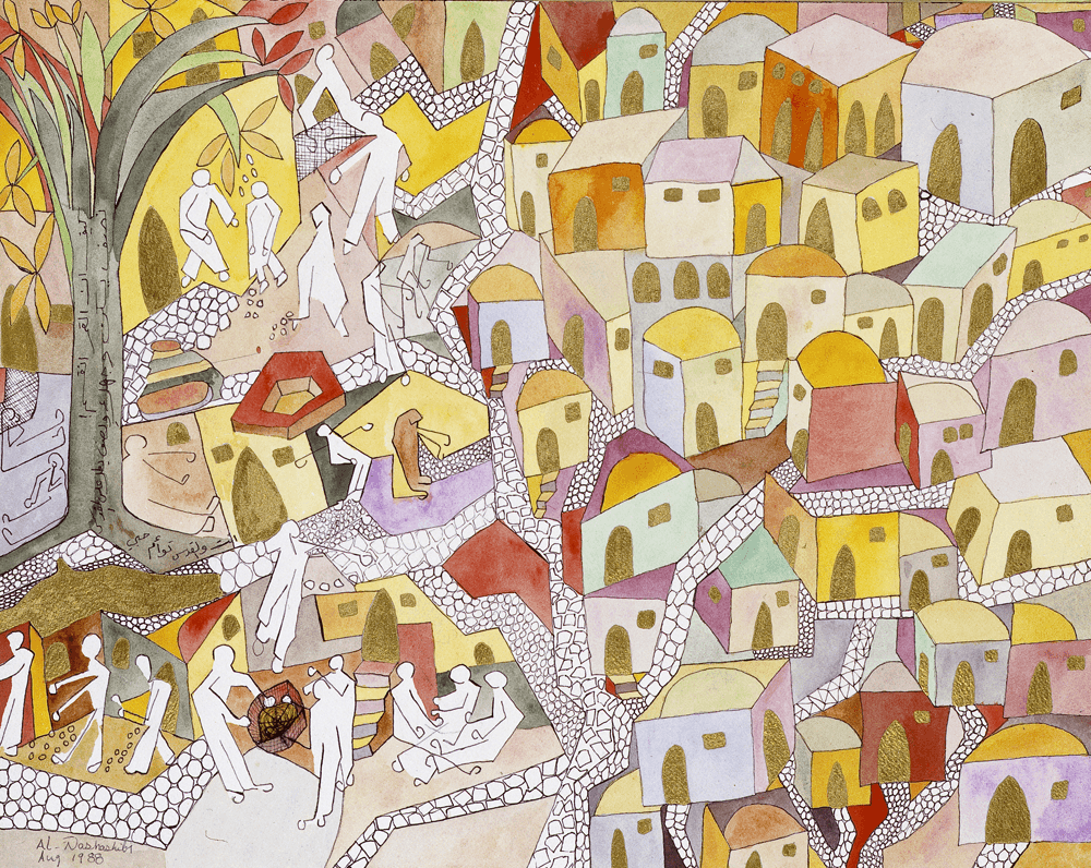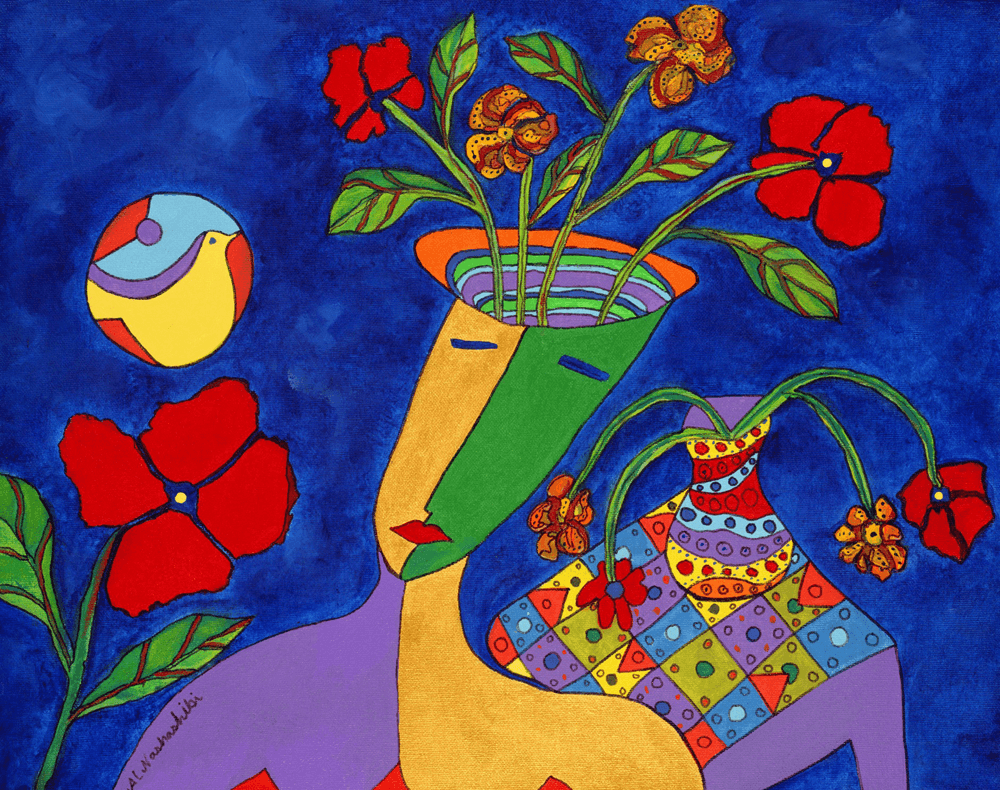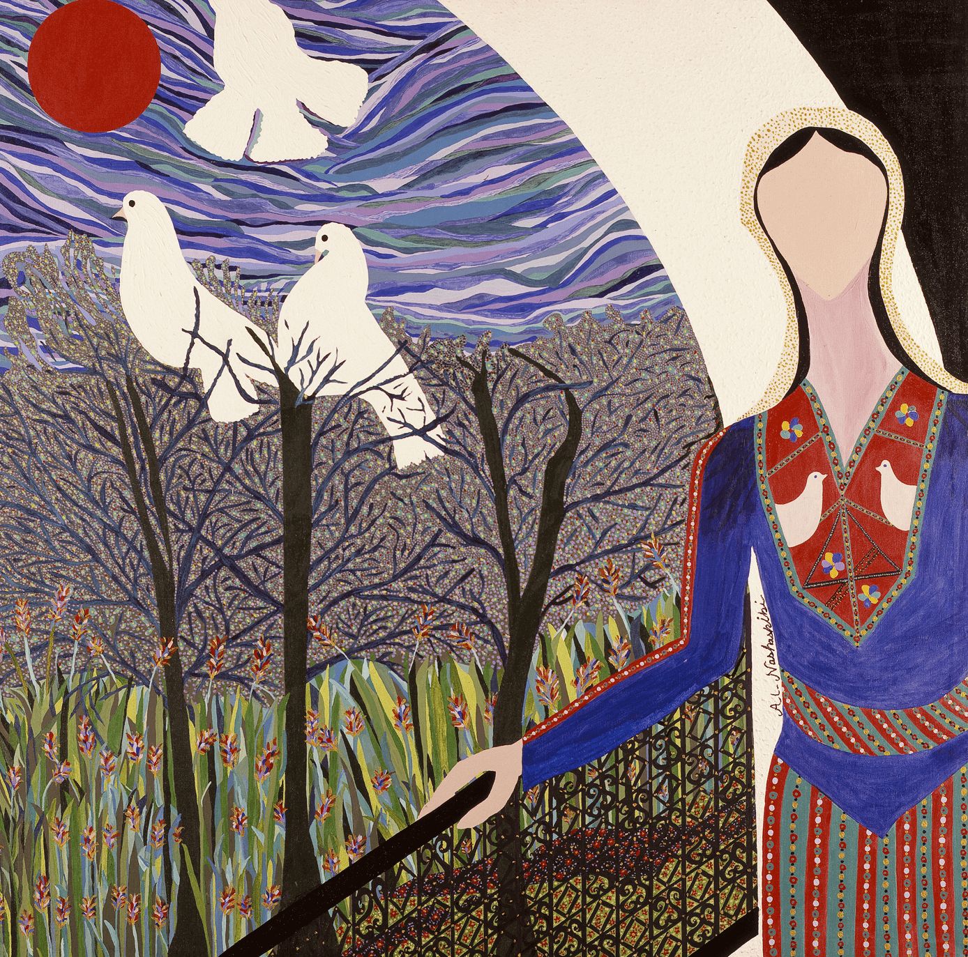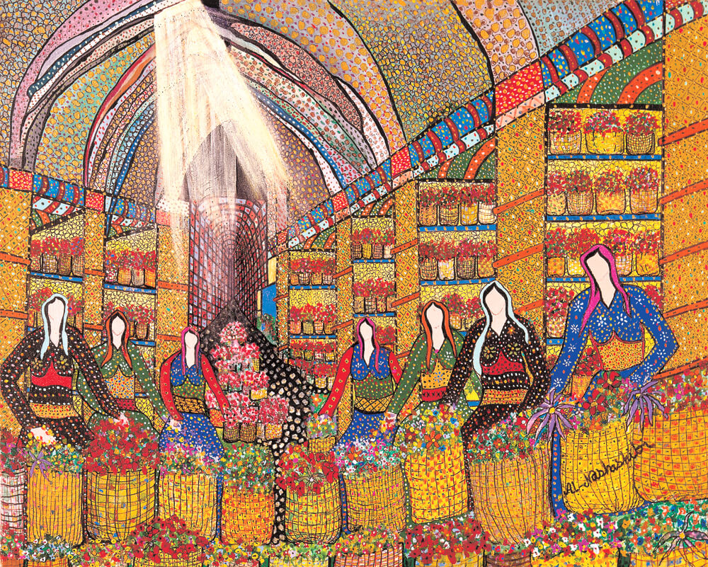 The award-winning artist, AlNashashibi, evokes a variety of emotions with abstract images and uses his creative art to convey his thoughts about key concepts in the lives of humans now and in the future. His creative use of acrylics, watercolor, ceramics, and murals expresses the images from within his soul. He uses a kaleidoscope of colors to reflect his view of people and life throughout time, and depictions of life in Jerusalem portrayed as the City of Love and as the Mother of Humanity.